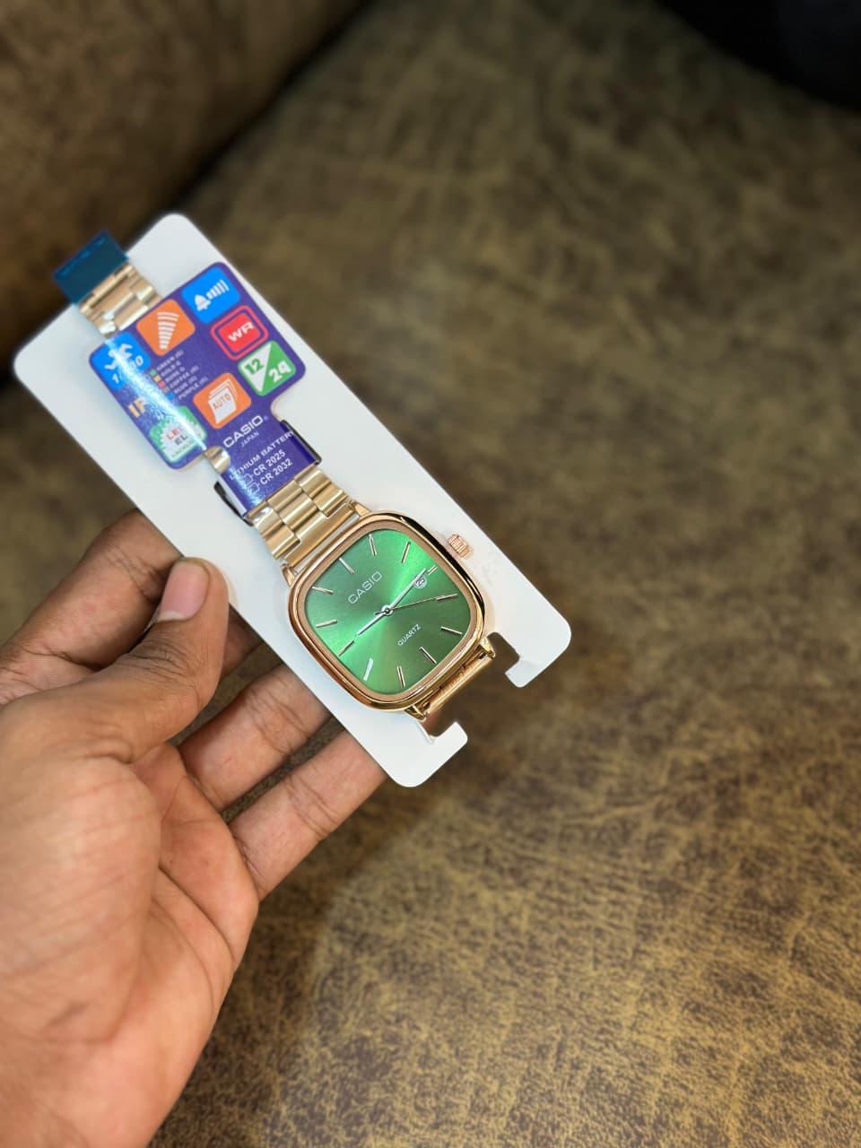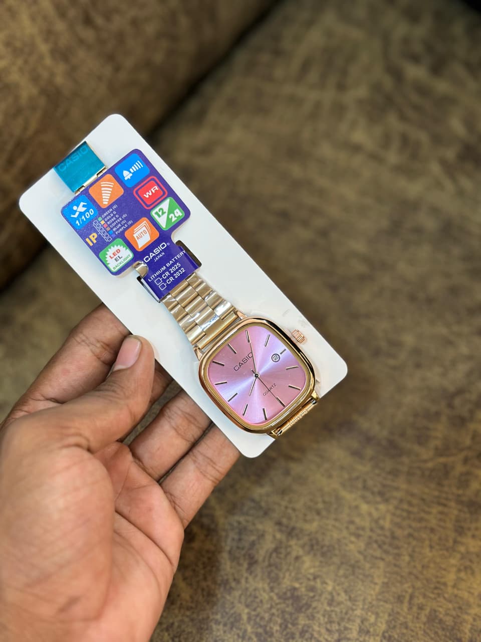 Upgrade your style with this timeless CASIO gold-tone wristwatch, designed for both elegance and durability. Featuring a sleek square dial with a minimalist white background, gold hour markers, and precise quartz movement, it delivers both accuracy and sophistication. The built-in date display keeps you on schedule, while the stainless-steel strap ensures long-lasting comfort and style.