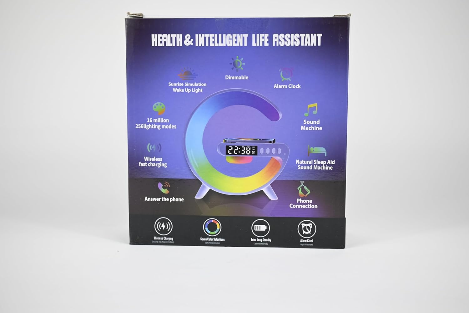 RGB LED Lamp with Wireless Charging, Bluetooth Speaker & USB-C – Modern G-Shaped Design
